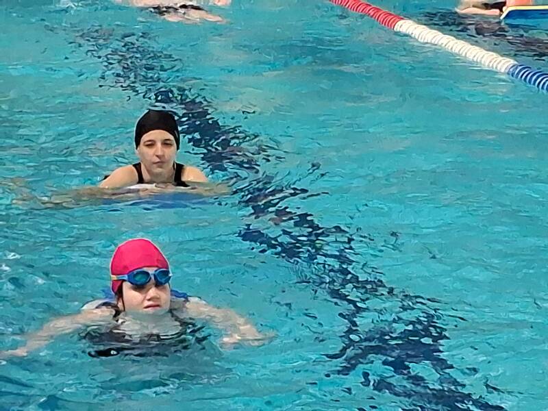 La natation au sport adapté tous les mardi. L'arrivée des plus jeunes fait plaisir et l'intégration est acquise immédiatement. Ce qui est bien pendant la séance de natation, c'est de pouvoir choisir entre nager (et même très sérieusement pour certains) , bouger et travailler sur les conseils des coachs, apprendre à nager ou se perfectionner, sans oublier les jeux, la détente,....