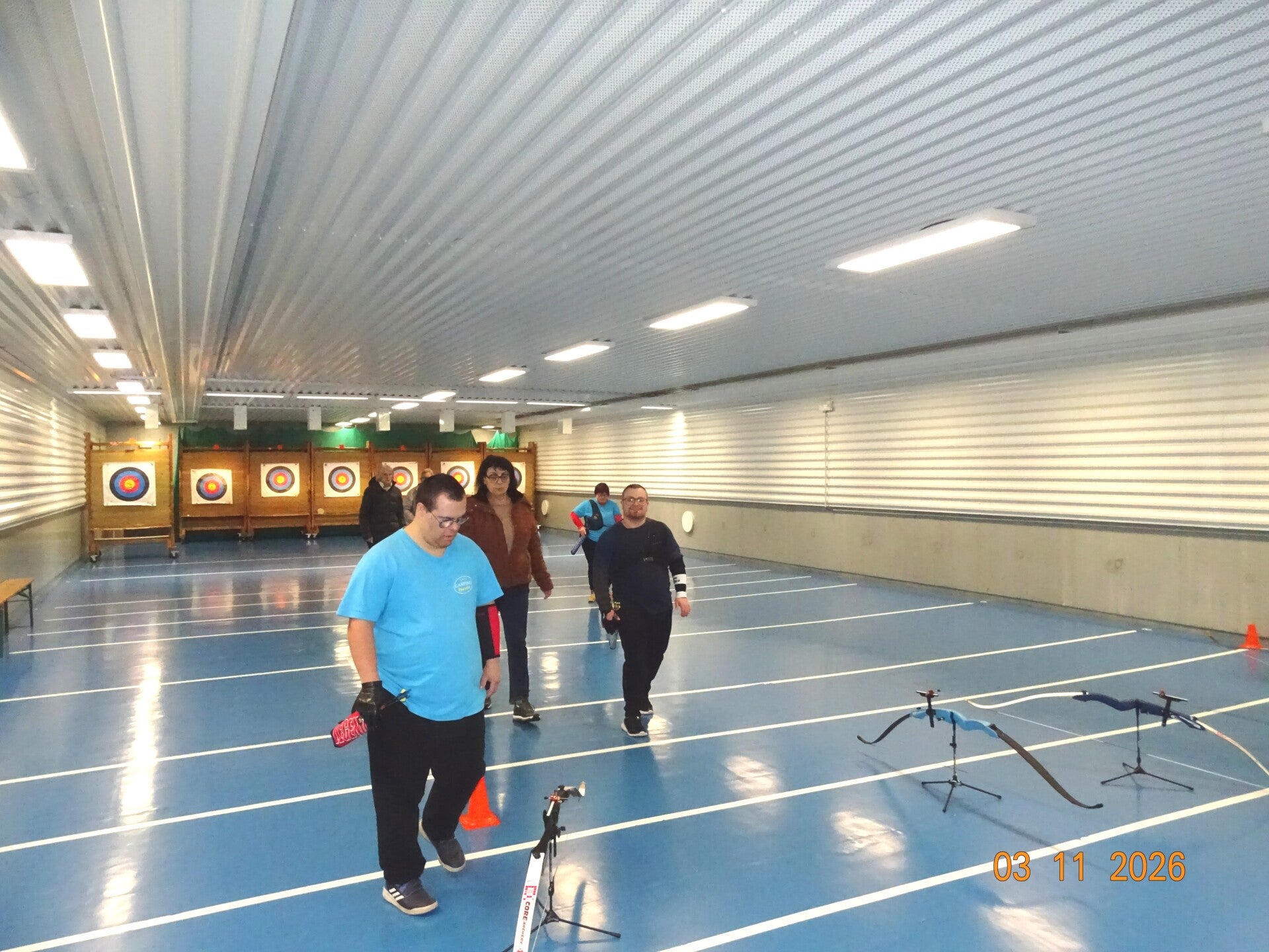 Comme tous les mercredi, ce soir 11 mars les archers du para tir à l'arc adapté à l'entraînement pour tous, loisirs et compétition. C'est avec le plus grand respect de la sécurité que les archers se préparent, décochent les flèches, attendent et vont ensemble vérifier les tir et récupérer les flèches.