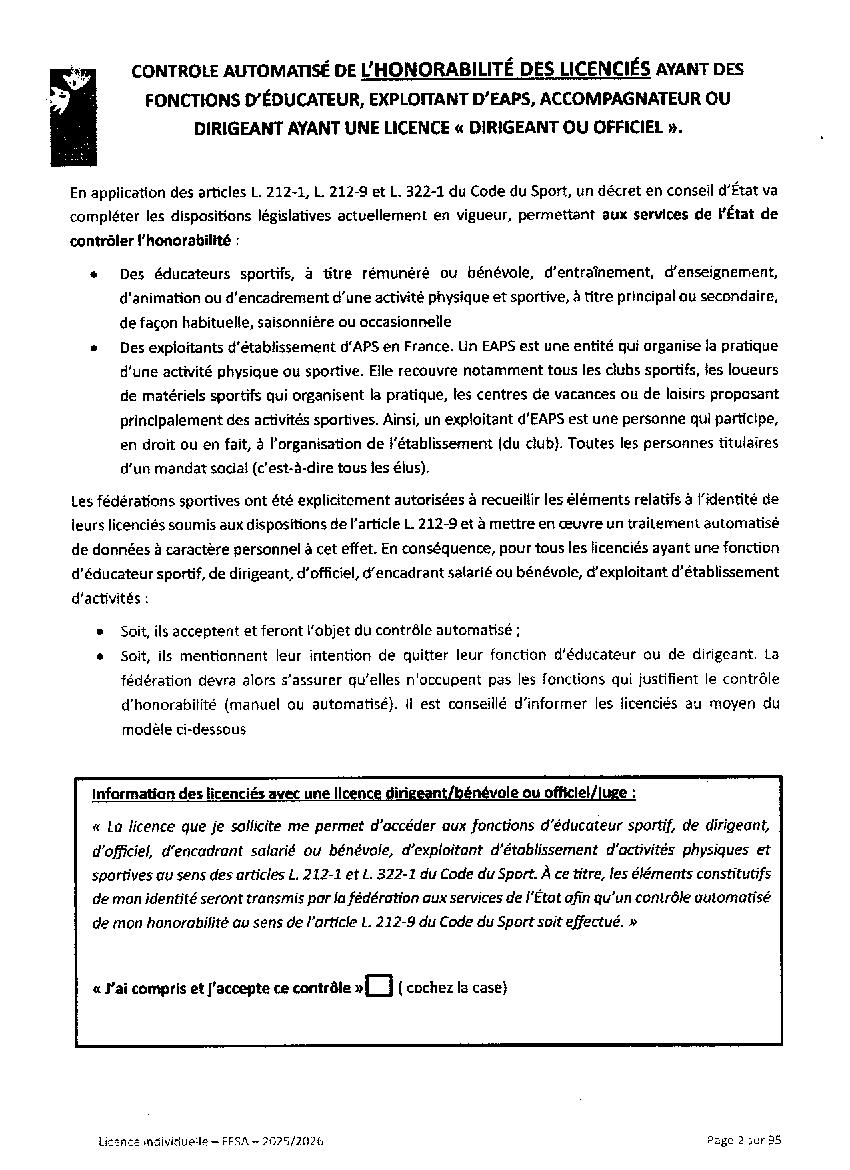 qui devront signer le fichier "honorabilité des licenciés" en plus du formulaire licence habituel (document obligatoire)